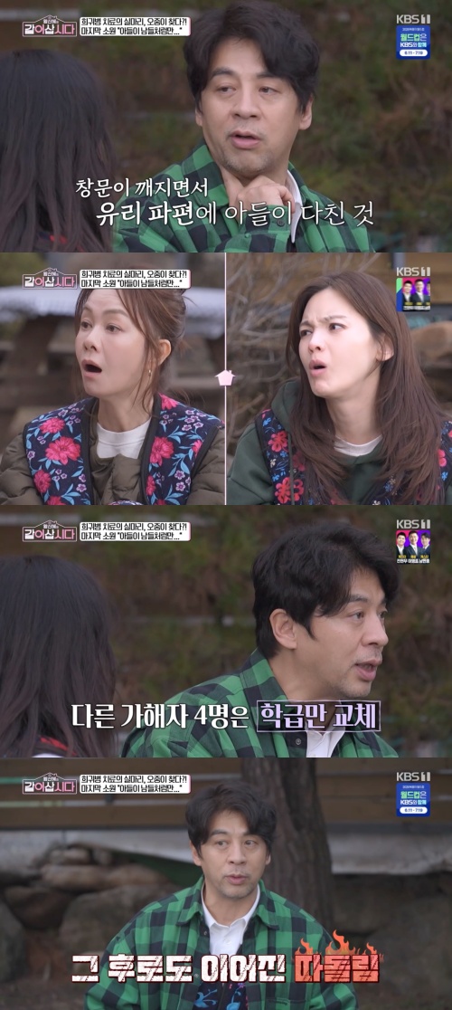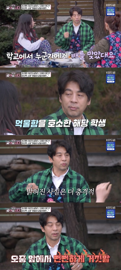 권오중은 "제가 아이를 때렸냐고 물어본 친구가 거짓말을 한 거였다. 화장실 같이 가면서 친한 척 하다가 몽둥이로 때리고, 화장실 가서 배를 때리고, 바닥을 기라고 하고"라며 "목을 다친 것도 아이가 창문을 보다가 뭘 창문을 보냐고 하면서 때려서 목에 유리파편이 박힌 거였다. 그걸 나중에 경찰이 조사를 하고서야 알게 됐다. 1년 동안 괴롭힌 걸"이라며 울컥했다.