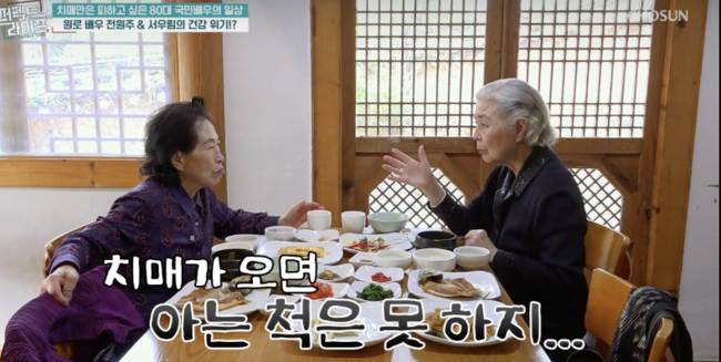 무엇보다 전원주는 치매에 대한 두려움과 자신의 상황을 솔직하게 털어놨다. 그는 “제일 친한 친구가 치매에 걸렸는데 인사를 했더니 ‘댁은 누구세요?’라고 하더라. 그 자리에서 주저앉았다”며 “치매는 말할 수 없는 고통이다. 살아도 사는 게 아니다. 처참하다”고 말했다. 이어 “1년 전 치매 초기 진단을 받았다”고 고백해 충격을 안겼다.