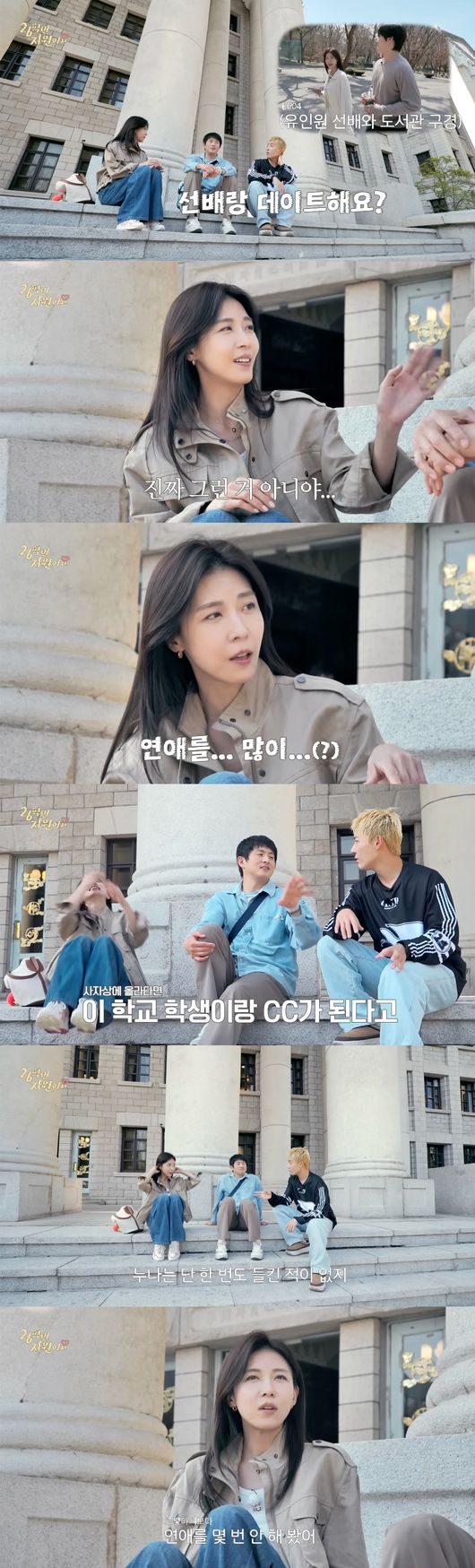 또한 하지원은 학교 사자상에 대한 전설을 소개하며 "사자상에 올라타면 CC가 된다고 하더라"라고 전했다. 이를 들은 강남은 하지원의 실제 연애사에 대해 물으며 "누나는 단 한 번도 들킨 적이 없다"고 말해 눈길을 끌었다.