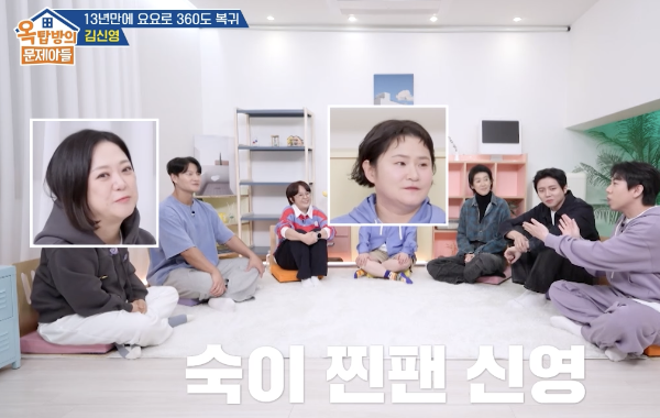 이날 김신영은 “고등학교 3학년 때 ‘따귀소녀’ 캐릭터를 보고 충격을 받았다”며 “반항적인 캐릭터가 너무 멋있어서 김숙 선배를 다 찾아봤다”고 회상했다. 이어 “팬카페에도 가입했고 닉네임이 ‘개그싼용’이었다”며 “코미디언이 되고 싶다고 메시지를 보냈는데 답장을 주셨다. 응원해주셔서 큰 힘이 됐다”고 밝혔다.