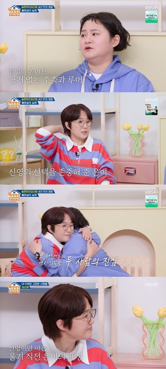 이날 김신영과 송은이가 4년 만에 예능에서 재회해 더욱 눈길을 끌었다. 김신영이 독립을 선언하며 송은이의 소속사와 재계약하지 않은 이후, 근거 없이 쏟아진 추측과 함께 두 사람의 불화설이 돌았다고.