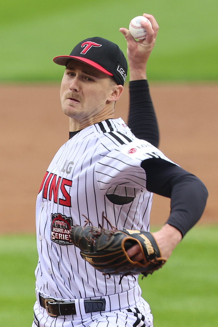 톨허스트는 26일 서울 잠실구장에서 열린 2025 신한 SOL뱅크 KBO리그 한국시리즈(7전 4선승제) 1차전 한화 이글스와 경기에서 6이닝을 소화하며 7피안타 7탈삼진 2실점 역투했다.