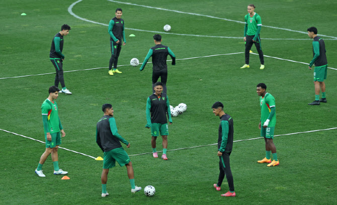볼리비아 남자 축구대표팀이 대한민국과의 A매치를 하루 앞둔 13일 오후 대전월드컵경기장에서 훈련하고 있다. 사진=연합뉴스