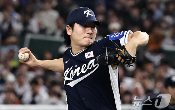 15일 오후 일본 도쿄돔에서 열린 월드베이스볼클래식(WBC) 대비 평가전 '2025 케이 베이스볼 시리즈(K-BASEBALL SERIES)' 일본과의 1차전 경기. 대한민국 선발 투수 곽빈이 역투하고 있다. 2025.11.15/뉴스1 © News1 구윤성 기자