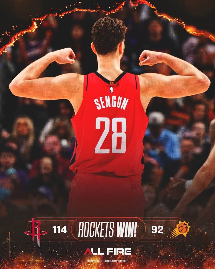 25일(한국시간) 휴스턴 로케츠는 홈에서 열린 경기에서 피닉스 선스를 114-92로 제압하고 최근 13경기에서 11번째 승리를 챙겼다. 반면 피닉스의 3연승은 중단됐으며, 92득점은 올 시즌 팀 최소 득점이다.