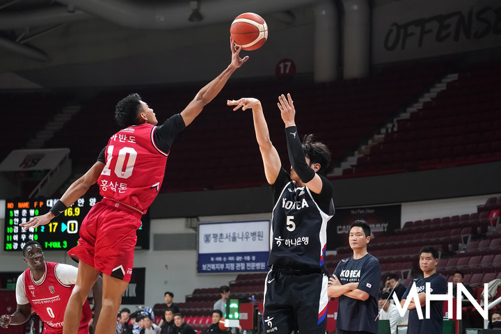 경기 초반에는 이현중의 3점과 점퍼로 대표팀이 앞서갔다. 그러나 정관장이 전성현과 브라이스 워싱턴의 연속 3점포로 8-8 동점을 만들었다.