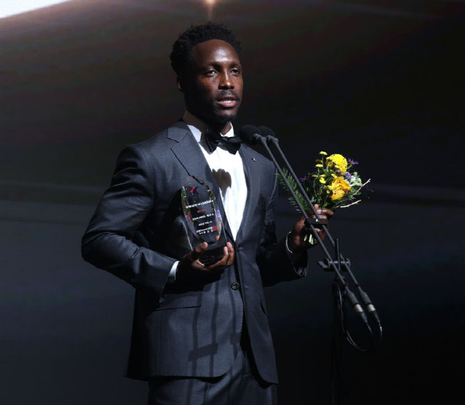 1일 서울 서대문구 스위스그랜드호텔에서 열린 K리그 2025 대상 시상식에서 K리그2 MVP를 수상한 인천 유나이티드 제르소가 수상 소감을 말하고 있다. 사진=연합뉴스
