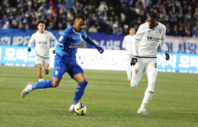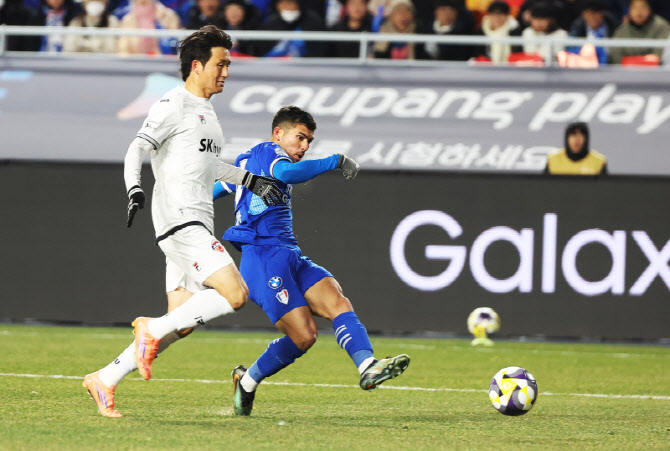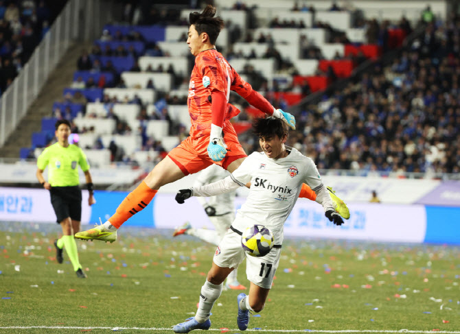 경기 흐름이 묘하게 바뀌기 시작했다. 후반 12분 페널티박스 왼쪽에서 김승섭의 크로스가 권완규 다리와 손에 차례로 맞았다. 비디오 판독(VAR)을 통해 페널티킥 여부를 살폈으나 그대로 진행됐다.