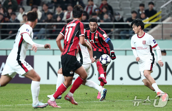 FC서울 제시 린가드가 4일 서울 마포구 서울월드컵경기장에서 열린 '2025-2026 아시아축구연맹(AFC) 챔피언스리그 엘리트(ACLE)' 리그 스테이지 4차전 FC서울과 청두 룽청의 경기에서 슈팅을 때리고 있다. 2025.11.4/뉴스1 © News1 김성진 기자