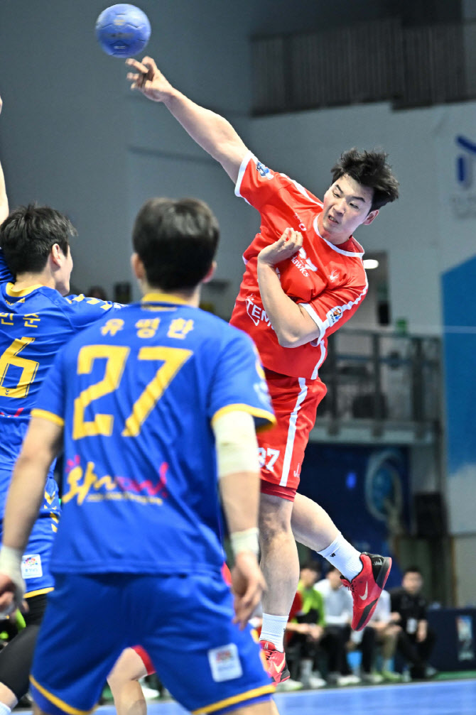 SK호크스는 6일 인천 선학체육관에서 열린 신한 SOL Bank 2025-26 핸드볼 H리그 남자부 2라운드 첫 경기에서 충남도청을 19-17로 눌렀다.