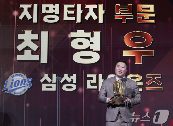 9일 오후 서울 송파구 롯데호텔 월드에서 열린 프로야구 2025 신한 SOL뱅크 골든글러브 시상식에서 지명타자 부문 골든글러브를 수상한 삼성 최형우가 수상 소감을 말하고 있다. 2025.12.9/뉴스1 © News1 김진환 기자