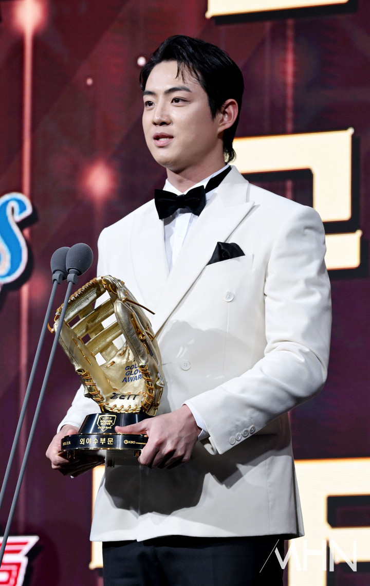안현민은 9일 서울 잠실 롯데호텔 월드에서 열린 2025 신한 SOL뱅크 KBO 골든글러브 시상식에서 외야수 부문 수상자로 불렸다.