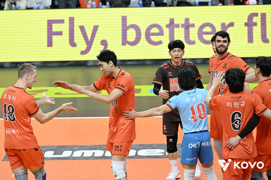 부산에서 열린 남자부 경기에선 홈팀 OK저축은행이 KB손해보험을 풀세트 접전 끝에 3-2(25-27 25-13 25-17 21-25 15-12)로 이겼다.