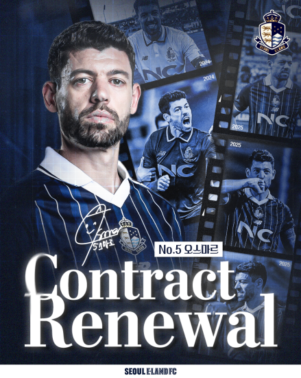(MHN 이나경 인턴기자) K리그 통산 784경기를 소화한 베테랑 수비수 듀오 김오규와 오스마르가 서울 이랜드 FC와 동반 재계약을 체결하며 2026시즌 K리그1 승격 도전을 이어간다.