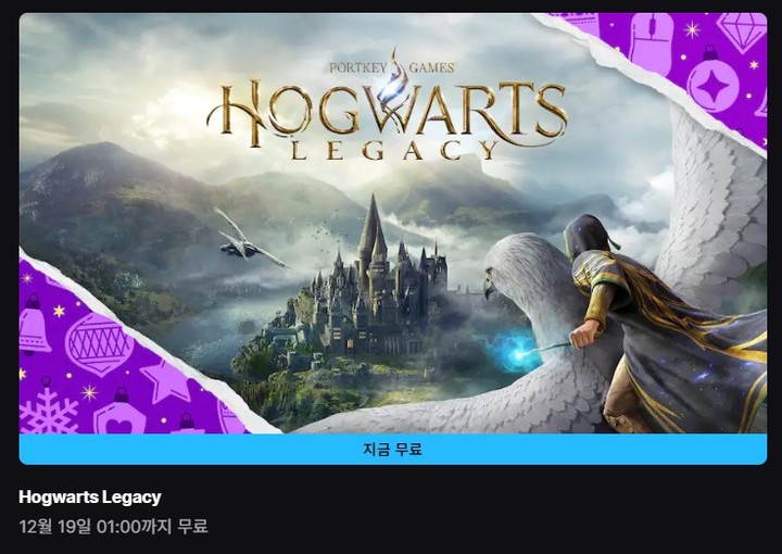 에픽게임즈는 '호그와트 레거시'를 12일부터 오는 19일 오전 1시까지 일주일간 무료로 배포하며, 이후에도 다른 게임들을 무료로 제공할 예정이다.