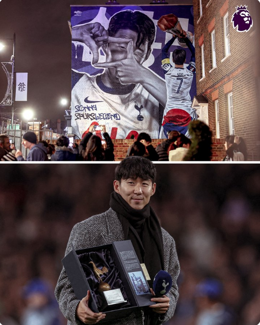 토트넘은 슬라비아전에 손흥민을 초청하며 전설의 귀환을 준비했다. 단순히 그를 경기장으로 초대했을 뿐만 아니라 경기장 앞 하이 로드 인근 건물 외벽에 손흥민을 주제로 한 대형 벽화까지 제작했다. 손흥민의 트레이드마크인 찰칵 세리머니와 UEL 우승 트로피를 들어 올리는 모습, 태극기 등이 담겼다.