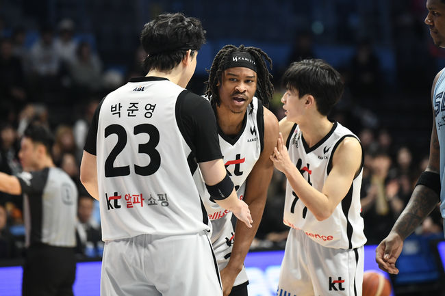 수원 KT는 16일 고양 소노아레나에서 개최된 2025-26 LG전자 프로농구 3라운드에서 고양 소노를 86-85로 이겼다. 11승 11패의 KT는 6위다. 3연패의 소노(8승 14패)는 8위다.
