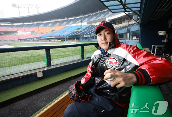 LG 트윈스 손주영이 16일 서울 잠실야구장에서 뉴스1과의 인터뷰 전 포즈를 취하고 있다. 2025.12.16/뉴스1 © News1 권현진 기자