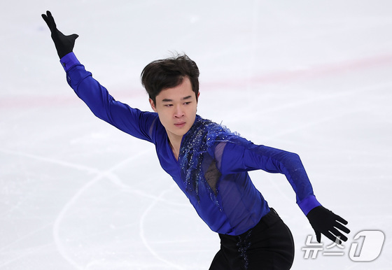 피겨스케이팅 선수 차준환이 3일 서울 양천구 목동 아이스링크에서 열린 제80회 전국남녀 피겨스케이팅 종합선수권대회에서 쇼트 프로그램 연기를 펼치고 있다. 2026.1.3/뉴스1 © News1 김성진 기자