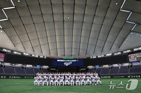 류지현 감독이 이끄는 대한민국 야구 국가대표팀이 14일 오후 일본 도쿄돔에서 월드베이스볼클래식(WBC) 대비 한일 평가전을 앞두고 단체 기념 사진촬영을 하고 있다. 2025.11.14/뉴스1 © News1 구윤성 기자