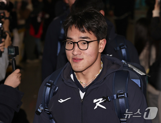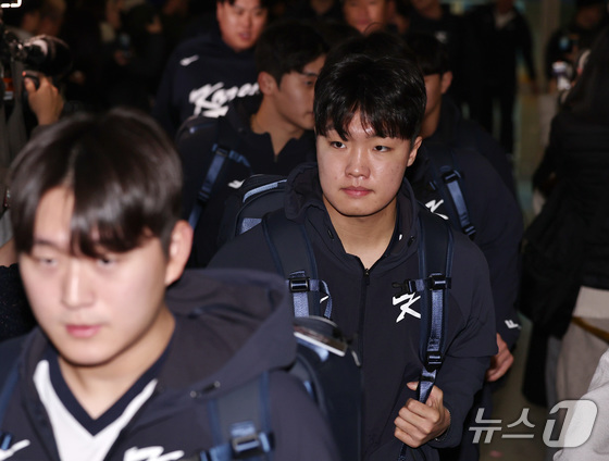 야구 국가대표팀 정우주가 9일 오전 인천국제공항 제1여객터미널에서 월드베이스볼클래식(WBC) 대비 1차 전지훈련을 위해 사이판으로 출국하고 있다. 2026.1.9/뉴스1 © News1 구윤성 기자