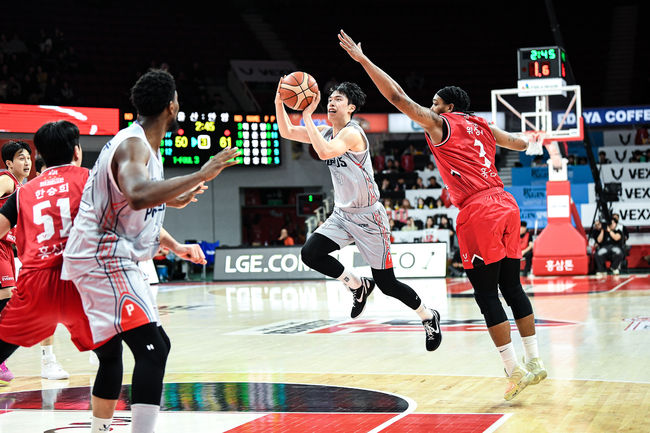 그러나 방심은 금물이었다. 정관장은 3쿼터 중반 61-48로 앞선 상황에서 연이은 실책으로 흔들렸다. 박무빈과 최강민에게 스틸을 연속으로 허용하며 점수는 더 이상 늘지 않았고, 격차는 순식간에 2점까지 좁혀졌다.