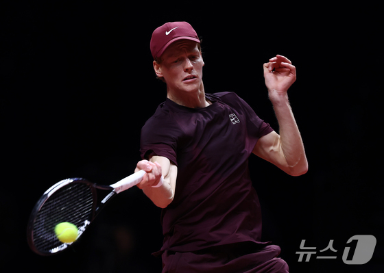 얀니크 신네르가 10일 오후 인천 중구 인스파이어 아레나에서 열린 '현대카드 슈퍼매치 14'에서 카를로스 알카라스와 경기를 치르고 있다. 2026.1.10/뉴스1 © News1 김민지 기자