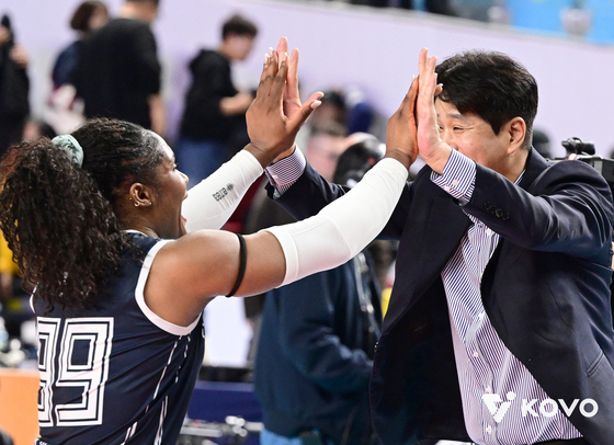 도로공사 모마와 김종민 감독. (KOVO 제공)