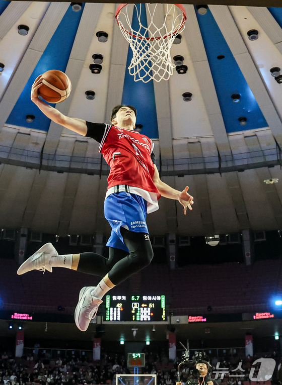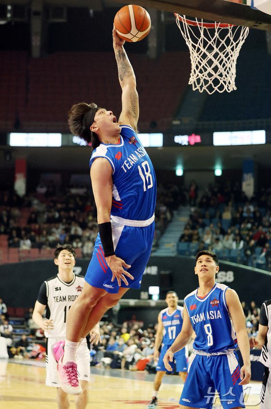 17일 오후 서울 송파구 잠실실내체육관에서 열린 2025-2026 LG전자 프로농구 올스타전 전야제 팀 아시아와 팀 루키의 경기, 팀 아시아 구탕이 호쾌한 덩크슛을 성공시키고 있다. 2026.1.17/뉴스1 © News1 김진환 기자