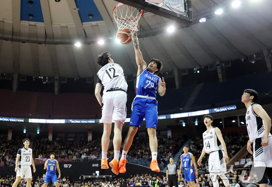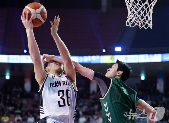17일 오후 서울 송파구 잠실실내체육관에서 열린 2025-2026 LG전자 프로농구 올스타전 전야제 팀 아시아와 팀 루키의 경기, 팀 아시아 케빈 켐바오가 인 유어 페이스를 성공시키고 있다. 2026.1.17/뉴스1 © News1 김진환 기자