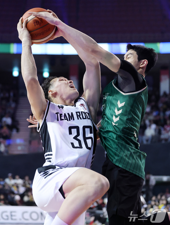 17일 오후 서울 송파구 잠실실내체육관에서 열린 2025-2026 LG전자 프로농구 올스타전 전야제 팀 아시아와 팀 루키의 경기, 팀 아시아 구탕이 호쾌한 투핸드 덩크슛을 성공시키고 있다. 2026.1.17/뉴스1 © News1 김진환 기자