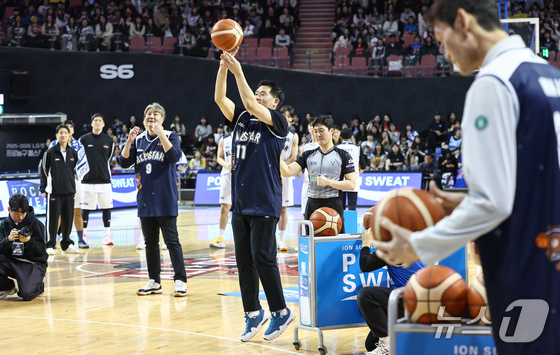 18일 오후 서울 송파구 잠실실내체육관에서 열린 2025-2026 LG전자 프로농구 올스타전 팀 브라운과 팀 코니의 경기, 팀 브라운 조상현 감독이 3점 슛 대결을 하고 있다. 2026.1.18/뉴스1 © News1 김도우 기자