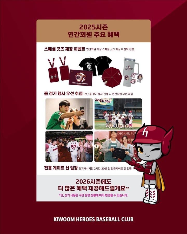 (MHN 유경민 기자) 프로야구 키움 히어로즈(대표이사 위재민)가 새 시즌 연간회원을 모집한다.
