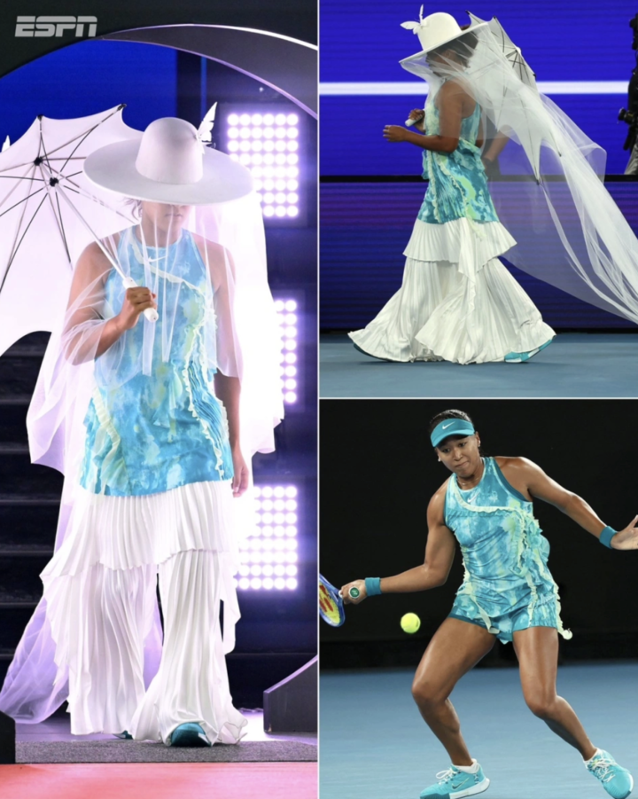 오사카 나오미는 경기 후 “이번 의상은 나이키와 함께 직접 디자인에 참여했다”며 “영감의 출발점은 해파리였다. 물속에서 유영하는 듯한 느낌을 표현하고 싶었다”고 설명했다. 여기에 더해 모자와 양산에 장식된 ‘나비’는 2021년 호주오픈 우승 당시의 기억을 상징하는 요소다.
