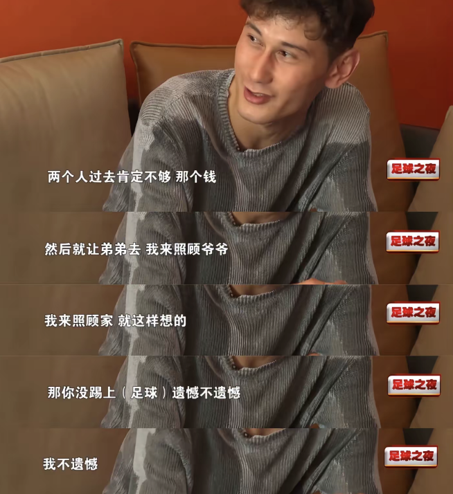 2014년 산둥 루넝 유소년팀 테스트 기회가 찾아왔지만, 형은 “어머니를 돌봐야 한다”며 동생에게 기회를 양보했다. 그러나 테스트는 실패로 끝났고, 얼마 지나지 않아 어머니마저 세상을 떠났다. 이후 조부와 함께 생활하던 형제에게 2015년 또 한 번의 기회가 찾아왔지만, 시험 비용 4000위안을 감당할 수 없었다. 당시 15세였던 형은 이웃에게 돈을 빌려 동생을 보내며 “할아버지의 연금”이라는 거짓말로 모든 부담을 떠안았다.