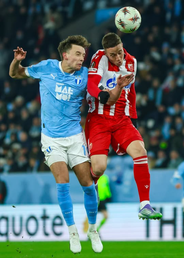 경기 초반은 말뫼가 주도했다. 빠른 측면 전개와 전방 압박으로 즈베즈다를 몰아붙였고, 전반 2분 엠마누엘 에콩의 슈팅으로 포문을 열며 분위기를 끌어올렸다. 그러나 즈베즈다는 노련한 수비와 중원 압박으로 흐름을 서서히 되찾았다.
