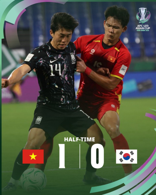 기회를 놓치자 오히려 한국의 어수선한 모습이 그대로 경기장에서 표출됐다. 전반 30분 역습 상황에서 응우옌 딘 박이 돌파 후 연결한 패스를 응우옌 꺽 비엣이 마무리하며 선제골을 뽑아냈다. 한국은 전반 34분 페널티킥을 얻는 듯했으나 VAR 판독 끝에 취소되며 흐름을 되찾지 못했다. 결국 전반은 베트남의 1-0 리드로 종료됐다.