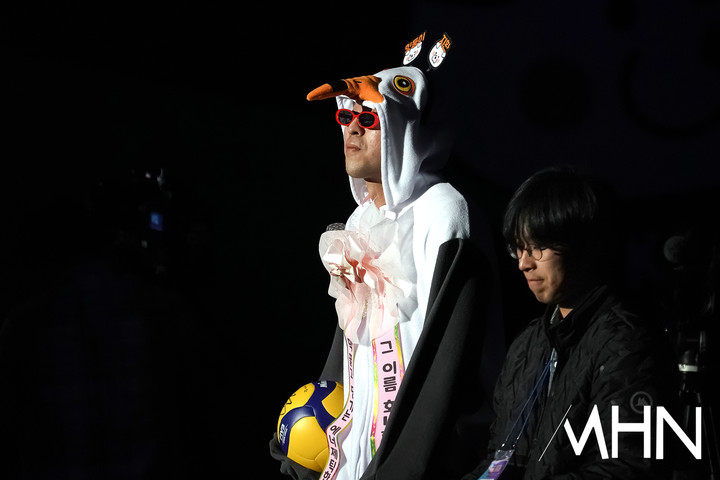 이후 올스타 최다 득표 1위 시상식과 인터뷰가 이어졌다. 남자부 신영석은 29,900표를 획득했고 여자부에서는 김다인(현대건설)이 21,056표를 받았다. 신영석은 수상 후 "제가 뼛속까지 추울 나이가 됐는데 제 겨울을 따뜻하게 만들어주셔서 감사하다고 전해드리고 싶다"는 재치있는 소감을 전했다. 이어 '케데헌' 코스프레에 대해서는 "제가 아이돌이 꿈이었는데 이뤄졌다"는 농담과 함께 "즐거운 추억을 많이 남기고 가셨으면 한다"는 말을 전했다.