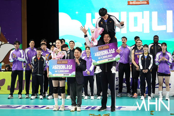 남녀부 세리머니 상에는 신영석, 이다현이 이름을 올렸다. 15표를 받은 신영석은 올 시즌까지 통산 4회, 23표를 받은 이다현은 통산 3회 수상으로 해당 부문 최다 기록을 달성했다. 세리머니상 상금은 각 100만원과 인형, 왕복 항공권이다.