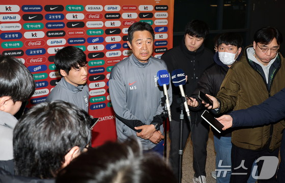 이민성 대한민국 23세 이하(U-23) 축구 대표팀 감독이 25일 오후 인천국제공항을 통해 귀국 후 인터뷰를 하고 있다. 이민성 감독이 이끄는 축구 대표팀은 김상식 감독의 베트남에 승부차기 끝에 충격적인 패배를 당하며 아시아축구연맹(AFC) U-23 아시안컵을 4위로 마감했다. 2026.1.25/뉴스1 © News1 김진환 기자
