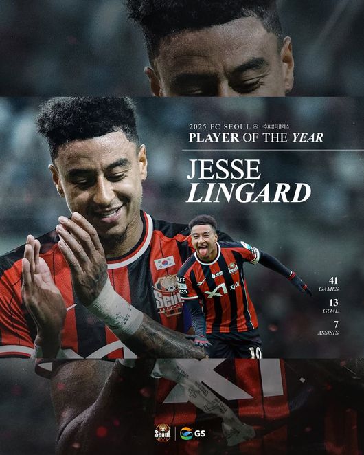서울 구단은 25일 소셜 미디어를 통해 "HS효성더클래스와 함께하는 2025 FC서울 'Player of the Year' 주인공 제시 린가드가 수호신 팬 여러분을 위해 소감을 보내왔습니다! 제시 린가드에게 많은 응원과 축하 부탁드리며, 항상 행운이 가득하길 바랍니다"라며 린가드의 영상 편지를 공유했다.
