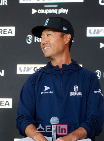 케빈 나가 지난해 5월 인천에서 열린 LIV 골프 코리아 대회 공식 기자회견에서 환하게 웃고 있다. (사진=이데일리DB)