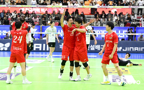 현대캐피탈에 대역전승을 거둔 한국전력. (KOVO 제공)