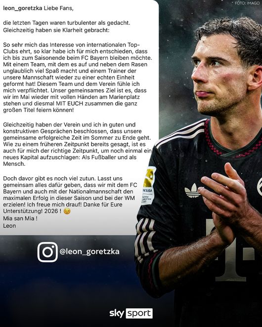 한편 고레츠카는 소셜 미디어를 통해 바이에른 팬들에게 작별 인사를 남겼다. 그는 "팬 여러분께. 지난 며칠은 예상보다 훨씬 혼란스러웠다. 하지만 동시에 다음과 같은 분명한 결정을 내릴 수 있었다. 세계적인 명문 클럽들의 관심에 감사하지만, 난 이번 시즌이 끝날 때까지 FC 바이에른에 남기로 했다"라고 선언했다.