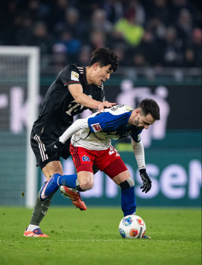 바이에른 뮌헨의 김민재가 함부르크 공격수와 치열하게 볼 다툼을 벌이고 있다. 사진=바이에른 뮌헨 구단 SNS