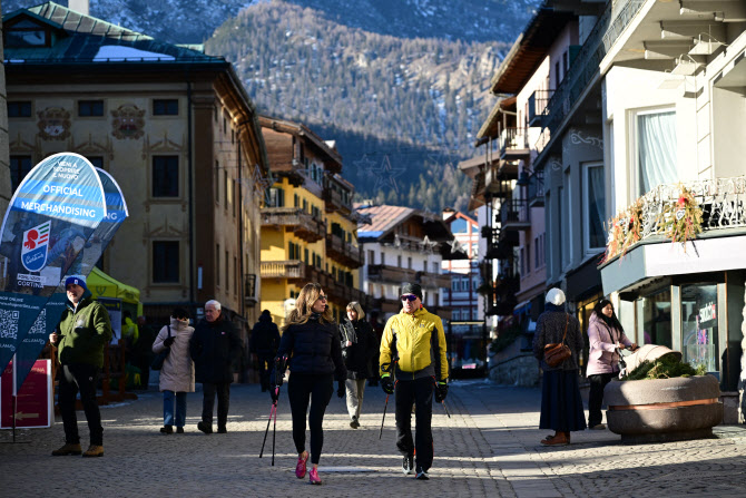 2026 밀라노·코르티나담페초 동계올림픽에서 여자 알파인 스키, 봅슬레이, 컬링 경기가 열릴 예정인 코르티나 담페초의 한 거리를 거니는 사람들.(사진=AP/뉴시스)