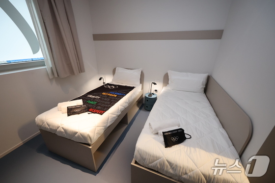 선수촌 내부는 넓은 편은 아니지만, 콤팩트하고 안락하게 꾸려졌다. 매트리스 아래 수납장이 있는 싱글 침대 2개와 작은 탁자, 옷장 등이 배치돼 실속을 챙겼다.