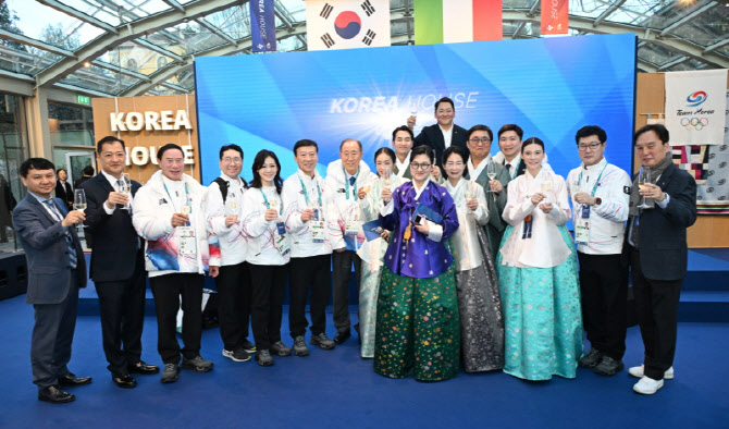 2026 밀라노-코르티나 동계올림픽 코리아하우스 개관식에 모인 관계자들이 기념촬영을 하고 있다. 사진=대한체육회