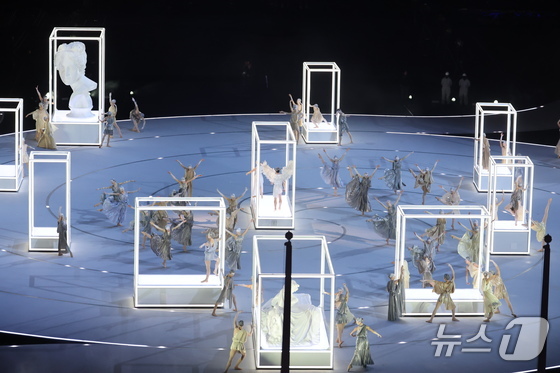 6일 오후(현지시간) 이탈리아 밀라노 산시로 올림픽 스타디움에서 열린 2026 밀라노·코르티나담페초 동계올림픽대회 개회식에서 '이탈리아의 조화 : 아름다움'을 주제로 공연이 펼쳐지고 있다. 2026.2.7 © 뉴스1 김진환 기자