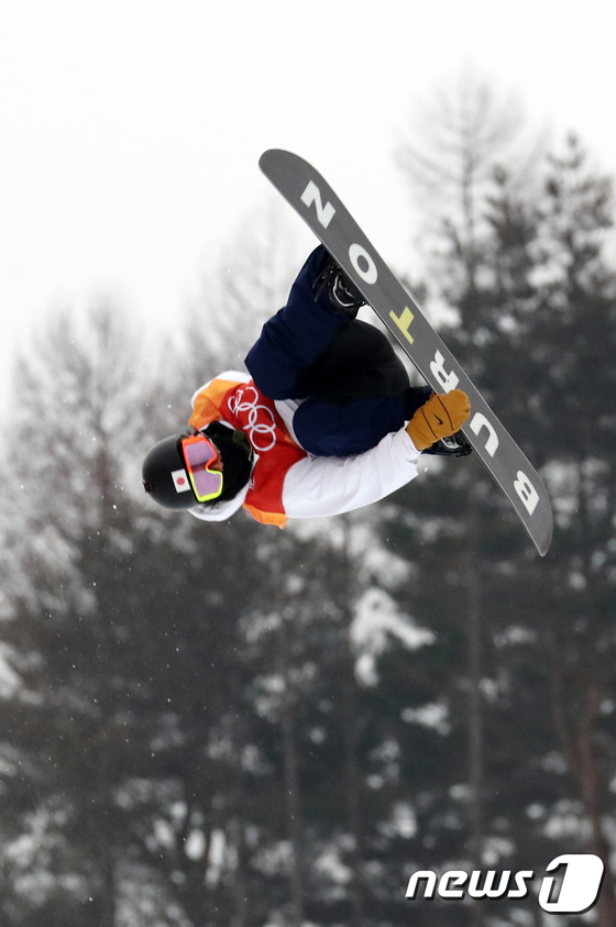 일본 아유무 히라노가 14일 강원도 평창군 휘닉스 스노경기장에서 열린 2018 평창동계올림픽 스노보드 남자 하프파이프 결승에 공중연기를 선보이고 있다. 2018.2.14 © 뉴스1 유승관 기자